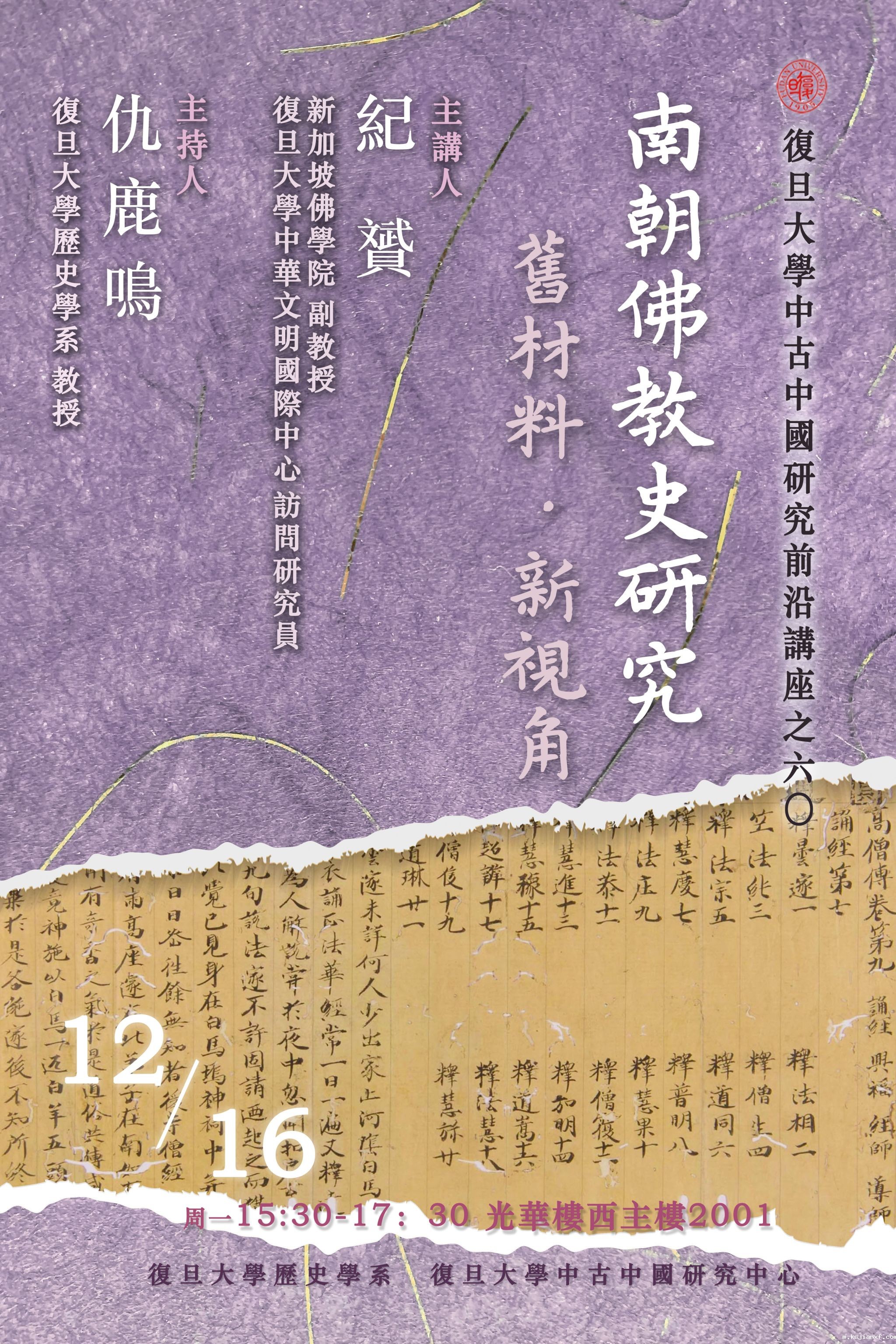 【中古中国研究前沿讲座】纪赟:南朝佛教史研究:旧材料、新视角