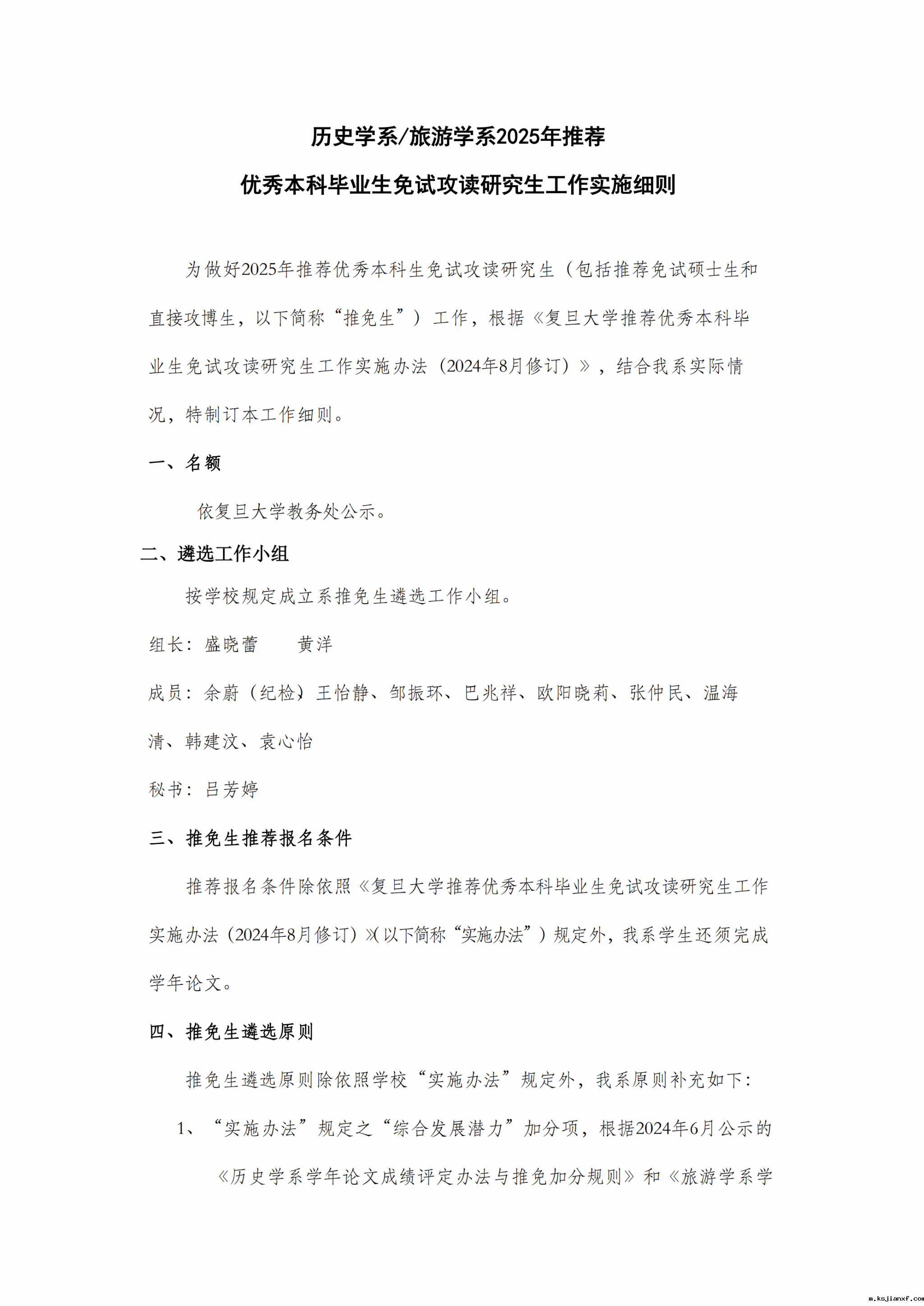 历史学系旅游学系2025年推荐优秀本科毕业生免试攻读研究生工作实施细则.pdf