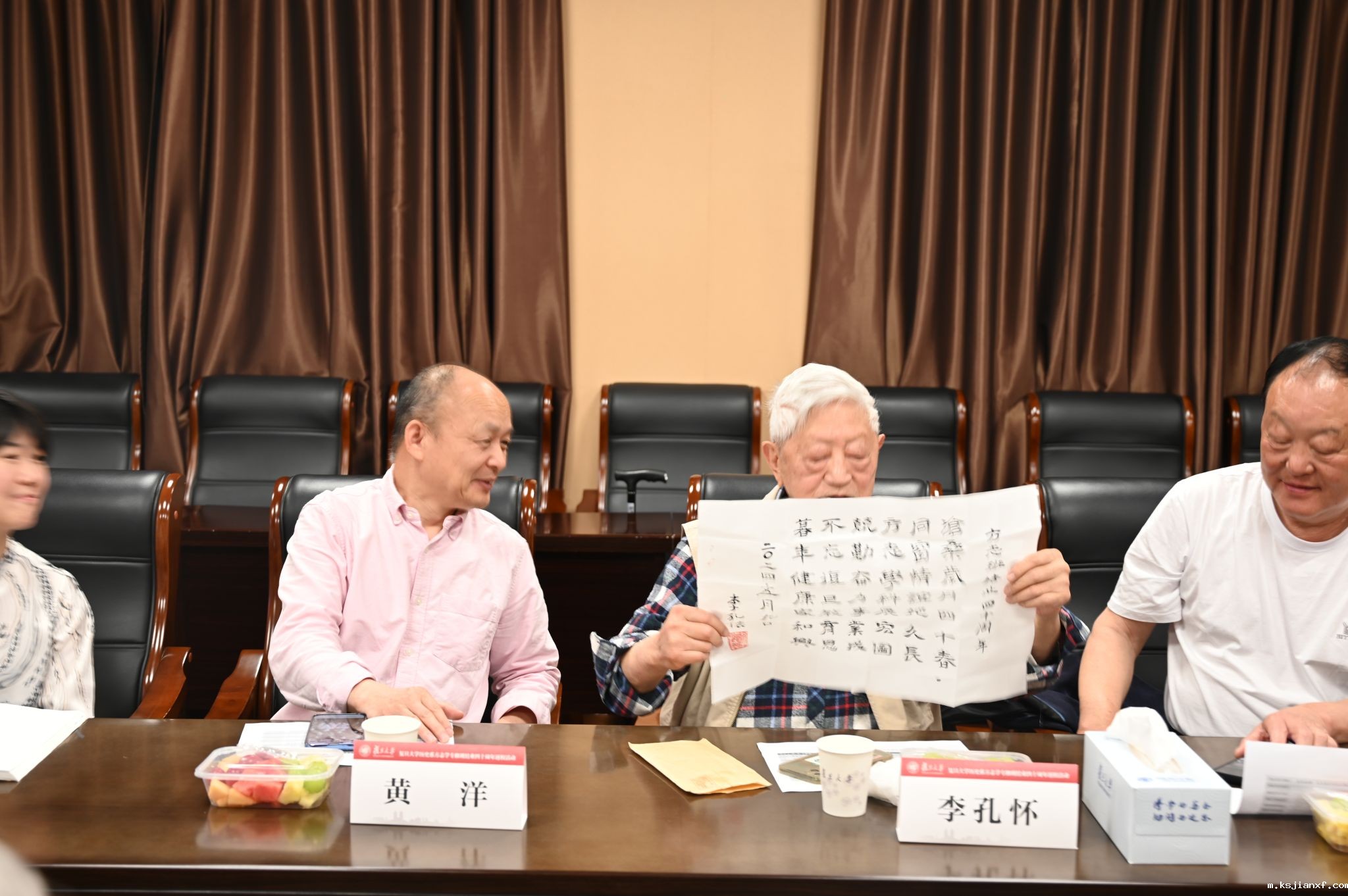 上午9时至11时,座谈会在领导、老师、毕业学员们的欢声笑语中开始,当年的班主任李孔怀老师向学员们赠送了书法作品,寄语专修班同学。学员代表向院系赠送了礼物,畅叙40年间各自工作、生活、发展情况和人生感悟。