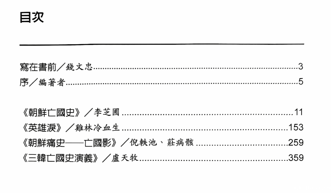 韩国学生《朝鲜越南亡国惨状书》、费波《韩国真相》、乐亭《亡国痛》……等单行本及长篇连载小说。