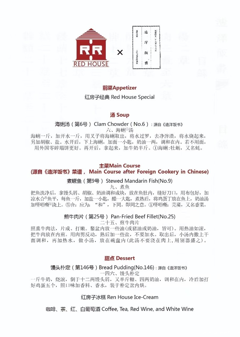 上海红房子西菜馆重现《造洋饭书》西餐制作的菜单