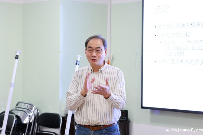 在沈艾娣教授结束报告后,主持人金光耀教授点评道,沈艾娣教授为大家讲述了一个非常精彩的故事,以往的研究较多关注西方知识如何传到东方,但沈艾娣教授关注了相反方向的、隐性知识的流通,讨论脉诊这一“关于触摸的实践”如何通过人与人的关系传播,给了大家很多启示。